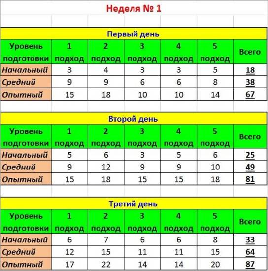 - НАЧАЛЬНЫЙ – если смогли подняться до 15 повторений