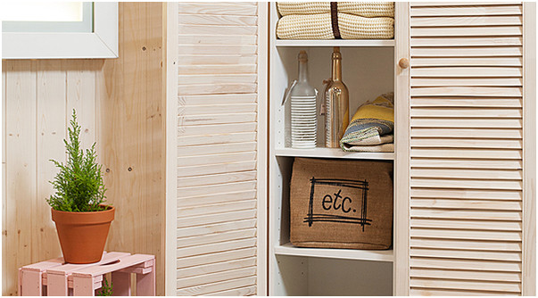 Поскольку балкон – это помещение, одной стороной выходящее на улицу, систему хранения нужно защитить от пыли. Лучше всего этой цели послужит шкаф с раздвижными дверцами или дверцами-жалюзи. В такой шкаф поместится много вещей, и дверцы будет нетрудно открывать в условиях ограниченного пространства.