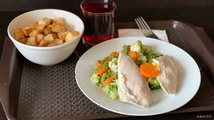 - 19:00 – куриный суп, овощной салат, питьевой йогурт.