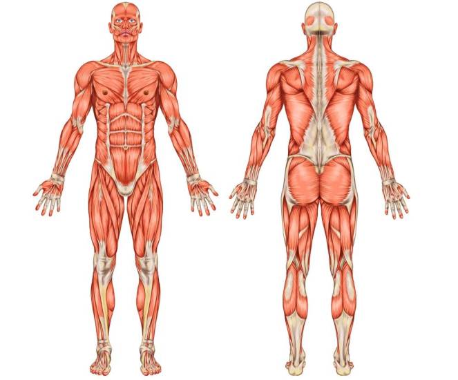 - Спина. Плечевой, поясничный и тазовый отделы. Мышечные волокна участвуют в своде, вращении верхних конечностей, поддерживают тело и позвоночник в прямом положении, защищают хребет.