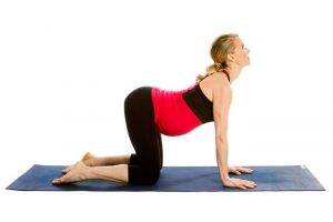 Кошка, которая двигает хвостом. Исходное положение на четвереньках, руки на уровне плеч. Ладони упираются в пол. При прогибе вверх выполнять волнообразные движения тазом. Плечами при этом нужно совершать движения к бедрам, попеременно к одному, затем к другому. Воздействие направлено на разработку позвоночника.