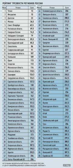 Список самых «трезвых» регионов: