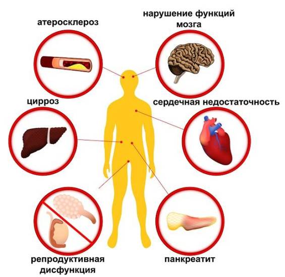 Негативное влияние проявляется и в стимулировании полового влечения, нарушении координации и дезориентации в пространстве. Очень плохо сказывается на организме бесконтрольный и не дозированный прием алкоголя, что может привести к интоксикации или отравлению, поражению всех систем и тканей.