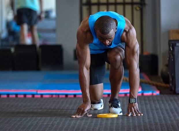 Классическая стартовая позиция: ставим опорную ногу вперед, весь центр тяжести стараемся держать над ней. Квадрицепс опорной ноги напряжен, как пружина, корпус наклонен чуть-чуть вперед, спина прямая, руки держим на уровне ребер. Старт должен получиться максимально взрывным и быстрым, чтобы преодолеть первый отрезок за минимальное время. Для действительно взрывного старта нам необходимы сильные и хорошо развитые ноги, поэтому уделяйте больше внимания упражнениям, развивающим взрывную силу квадрицепсов: приседания со штангой с паузой в нижней точке, становая тяга сумо, прыжки на коробку, приседания с выпрыгиванием и т. д.