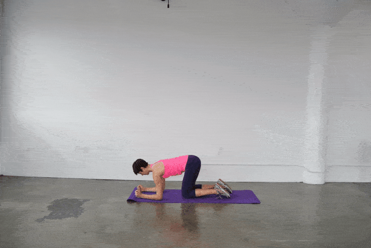 Как делать: Встаньте на четвереньки, запястья на одной линии с локтями, а колени прямо под бедрами. Опустите предплечья на пол, локти прямо под плечами. Сожмите руки в кулаки и поставьте их в стороны друг от друга. Втяните пупок к позвоночнику прежде чем распрямить ноги позади себя, тело должно быть прямым с головы до пят. Задержитесь в этом положении, вдыхая через нос и выдыхая через рот, сжимая мышцы брюшной полости.