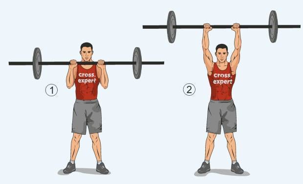 - Жим штанги стоя 3 подхода х 8 повторений (следите за спиной)