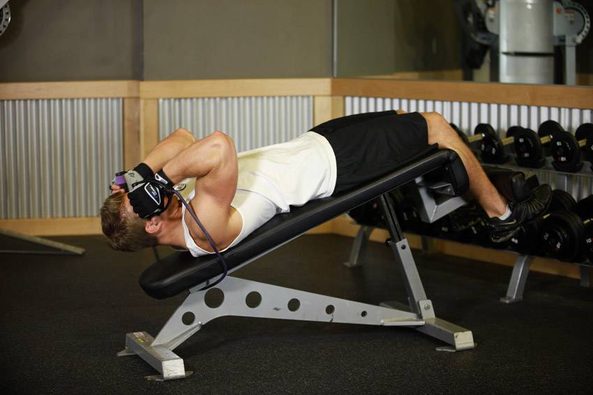 - Не допускается полное выпрямление конечностей (то есть делая, например, жим лежа, вы должны сохранять легкий прогиб в локтях в верхней точке. То же касается упражнений для ног, спины и других групп). При полном выпрямлении нагрузка переключается с мышц на суставы.
