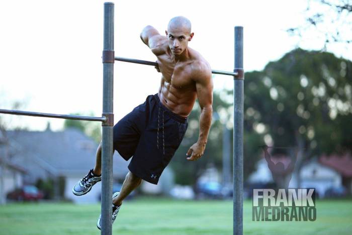 Когда Френк Медрано начинал, он сосредоточивался на основных упражнениях: отжиманиях, подтягиваниях, отжиманиях на брусьях. Вместо того, чтобы сразу пытаться выполнять сложные движения, он оттачивал силу, доводил технику до идеала в базовых движениях.