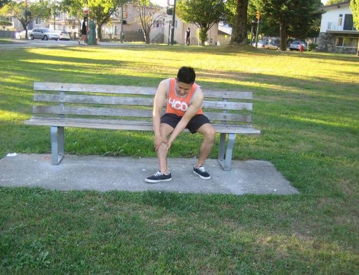 В таком положении натягивайте мышцы каждой ноги по 10-20 секунд.