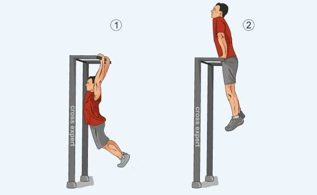 Чтобы выполнить подтягивание, необходимо повиснуть на перекладине, усилием рук и спины подтянуться до уровня подбородка, после вернуться в исходное положение. Для глубокой прокачки мышц рекомендуется возвращаться в нижнюю точку подконтрольно. Если тяжело подтянуться даже 1–2 раза, поначалу можно просто висеть по 30–40 секунд 3–4 подхода.