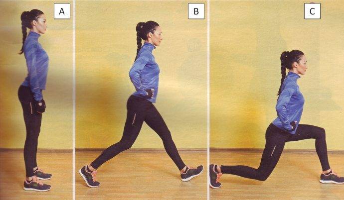 Технически сложное упражнение, требующее хорошего развития всех мышечных групп и хорошей координации движений. Очень полным людям делать выпады в первые 2-3 месяца после начала занятий не рекомендуется.