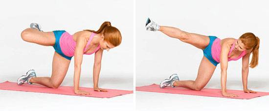 1 — Встаньте на четвереньки. Держа спину прямой, согните правую ногу в колене и отведите в сторону. Сделайте удар правой ногой в сторону, затем согните колено в исходное положение. Выполните 15 повторений и смените ноги.