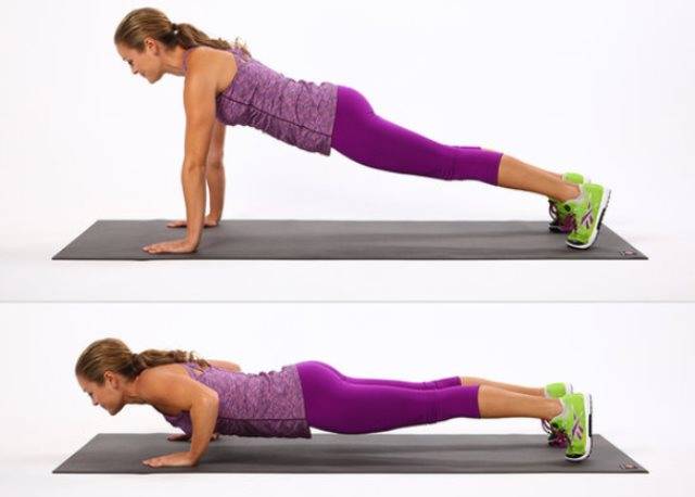 Следующий шаг на пути к тому, как научиться отжиматься девушке, уже очень близок с классическими отжиманиями, но нагрузка при нем значительно меньше.