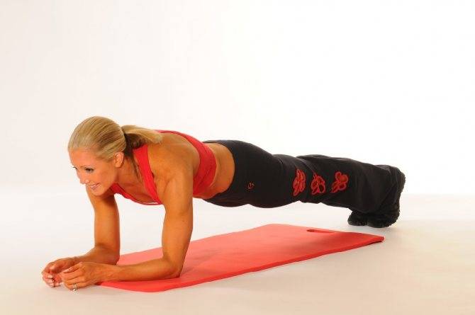 - Нужно поставить руки на локти, а ноги – на носки, чтобы получилась ровная линия, задержаться в этом положении на некоторое время.