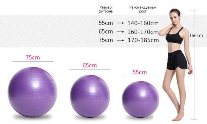 - Для роста в 165 см мяч нужен диаметром в 55 см.