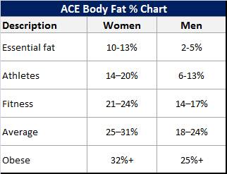график идеального процента жира в организме №1: ACEНиже представлен график от ACE (American Council on Exercise, Американский Совет по Тренировкам) и это один из наиболее часто используемых графиков жира в организме. Как видите, у женщин процент жира выше относительного мужского на одном и том же уровне. Он выше у женщин из-за таких различий, как гормоны, грудь и половые органы. Кроме того, женщинам нужен более высокий процент жира для овуляции.