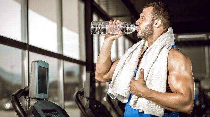 После работы в тренажёрном зале спортсмену следует выпить воды или чай без сахара. Недостаток влаги необходимо обязательно компенсировать, поскольку из-за сильного потоотделения после упражнений может быть обезвоживание организма. Не рекомендуется пить во время спортивных занятий. При сильном чувстве жажды можно просто прополоскать рот жидкостью.