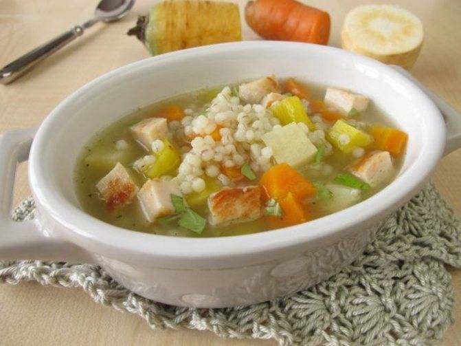 Острый перловый суп с курицей