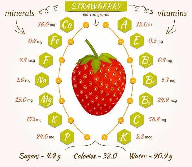 Оздоровительное влияние, польза клубники обусловлены составом элементов, содержащихся в ней: