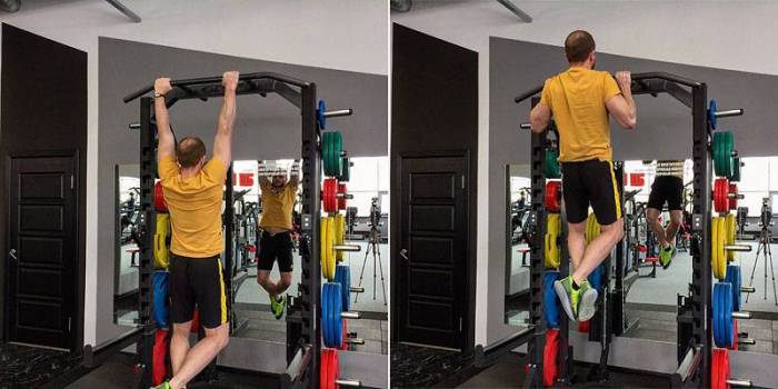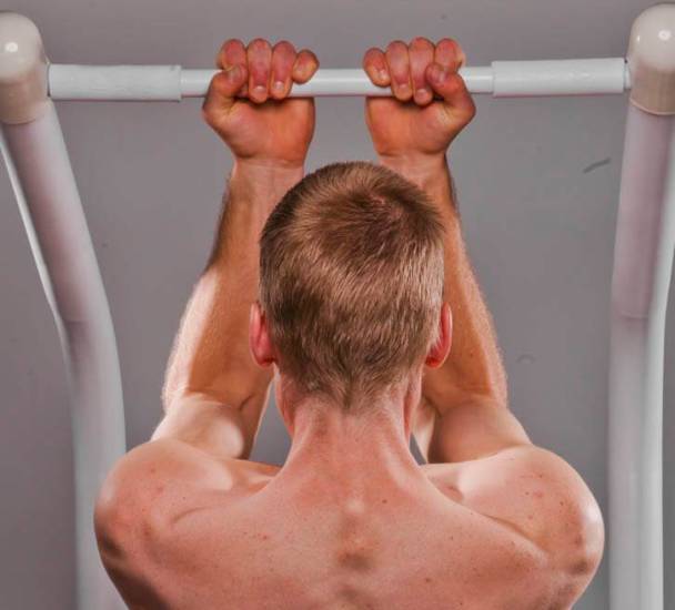 - Подтянитесь. Сведите лопатки. Верхняя часть грудины должна коснуться перекладины.