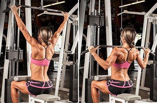 Именно поэтому лучшими упражнениями на спину являются вертикальные и горизонтальные тяги — подтягивания, тяга верхнего блока сидя, тяга блока к поясу, тяга штанги в наклоне и так далее. Кроме этого, для равномерного развития фигуры, необходимо уделять внимание развитию трапеций и плеч