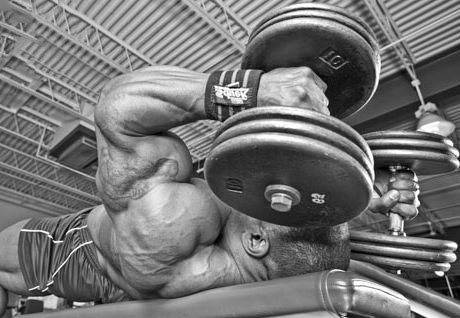 Явственное напряжение рук при разгибании и волевое усилие на последнем повторении свидетельствуют о правильно подобранном весе отягощения.