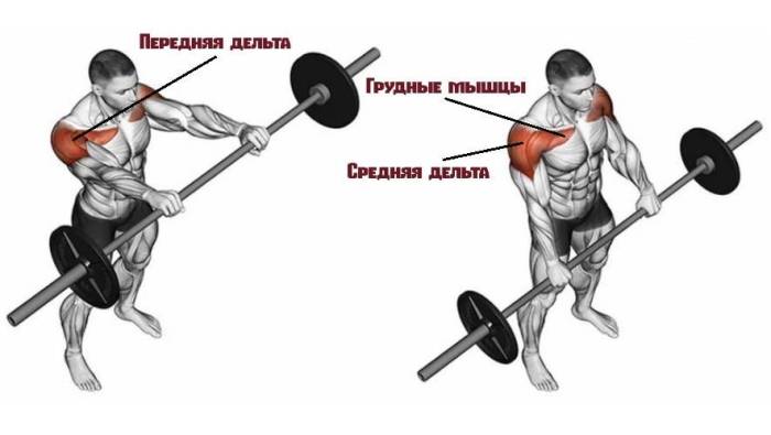 Какие мышцы задействует подъемы штанги перед собой?