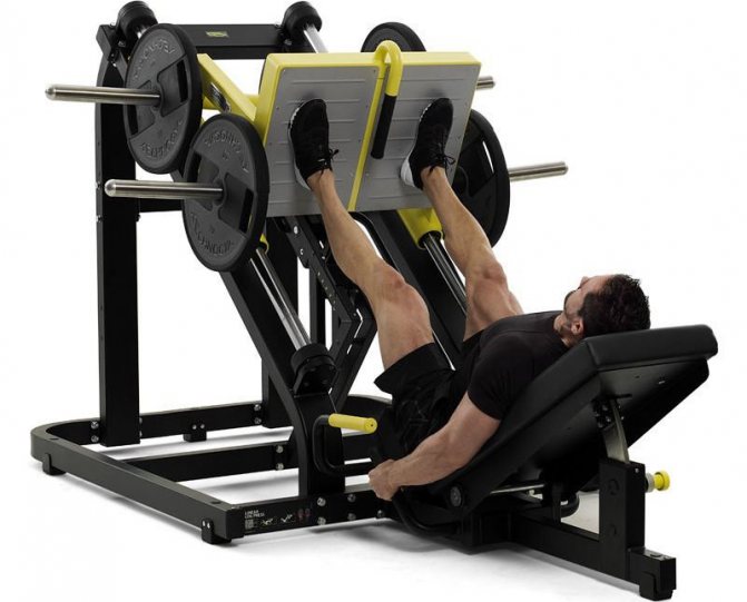 Большую часть необходимого оборудования для работы над ногами можно найти в спортклубах, в независимости от их положения и статуса. Подойдут специальные тренажеры для икр, а также те из них, что позволяют тренировать сгибание/разгибание ног в коленях в лежачем и сидячем положениях. Самая большая очередь, как правило, образуется у оздоровительной машины, похожей на изобретение Гаккеншмидта, но с одним отличием — здесь используется платформа.
