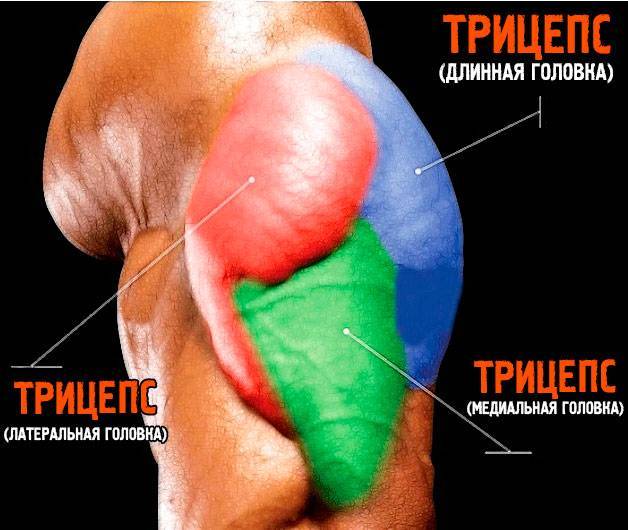 Но несмотря на это, в разных упражнениях, существует некий акцент нагрузки на какую-либо из головок или две головки. Т.е., вроде бы, работают все головки трицепса, но в разной степени.