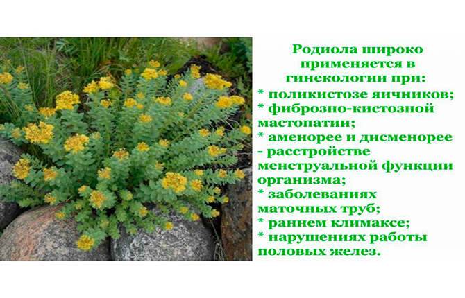 Растение нашло широкое применение в гинекологии. Золотой корень для женщин рекомендуют использовать при лечении:
