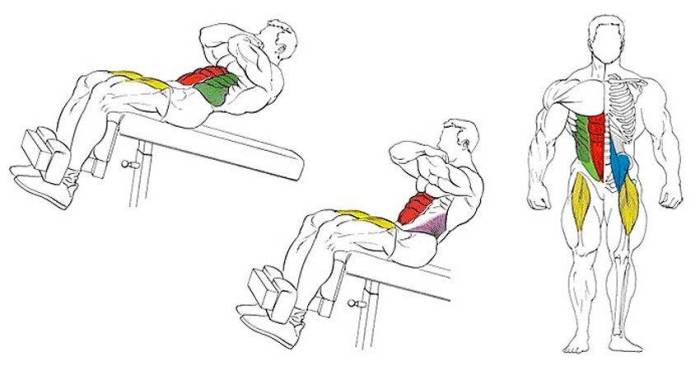 Техника выполнения подъёмов туловища на наклонной скамье