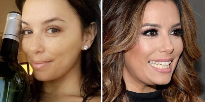 Одна из известных «Отчаянных домохозяек» – Ева Лонгория – пользуется популярностью у поклонников не только благодаря актерскому таланту. Многие считают девушку одной из самых сексуальных представительниц прекрасного пола на планете, к тому же, звезда является официальным лицом мега-популярного косметического бренда L’Oreal Paris, что вынуждает ее в любое время суток быть во всеоружии. Тем не менее, в сети немало фотографий Евы без косметики, причем на них девушка так же восхитительна, как на обложках глянца.