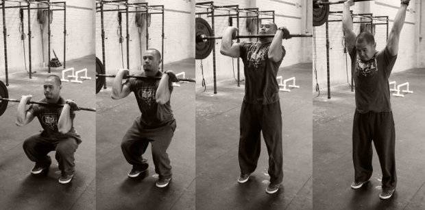 В кроссфите также встречается такой вид упражнений, как кластер, который состоит из следующих элементов: взятие перекладины на грудь с пола и последующий трастер.