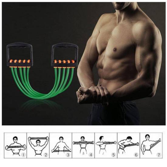 | Грудной и плечевой тренажер | Модель, основанная на растяжении жгута | Состоит из двух удобных рукояток, соединенных между собой прорезинеными жгутами или металлическими пружинами в количестве не менее 3 штук. Жгуты съемные, позволяют регулировать степень нагрузки. | Верхняя часть туловища: бицепс, трицепс, дельты, грудные мышцы и верхняя часть спины. |