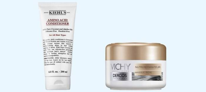 Интенсивная питательно-восстанавливающая маска для волос Derсos, Vichy, «достраивает» кератин вокруг стержня волоса за счет комплекса керамидов и коктейля из пяти аминокислот (аргинин, глутамин, серин, цистеин, пролин).