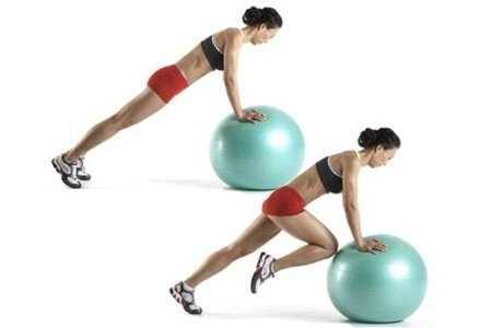 Для снижения давления на плечевой пояс можно выполнять, опираясь ладонями в фитбол. При такой вариации будут тренироваться мелкие мышцы-стабилизаторы, они отвечают за сохранение баланса.