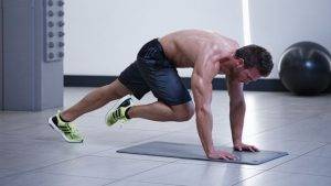 - Альпинист с поворотом корпуса – максимальная нагрузка на мышцы пресса и кора.