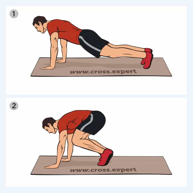 Давайте шаг за шагом рассмотрим, как правильно выполнять упражнение. Техника кажется предельно простой. Однако при несоблюдении хотя-бы одного из пунктов, польза упражнения скалолаз значительно снижается.