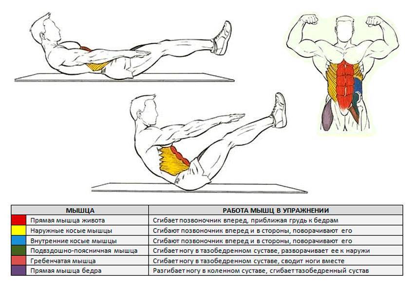 Дополнительно работают квадрицепсы, подвздошные мышцы, предплечья и спина.