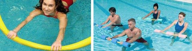 - Держась за бортик бассейна или поручни, ногами имитируйте езду на велосипеде. Сначала делайте так, будто крутите педали вперед, а потом – назад. Выполняйте упражнение 5 минут. Нагрузка будет выше, если в качестве опоры использовать нудл, а не бортик.