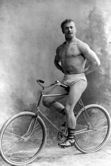 1896 год. Евгений Сандов позирует на велосипеде.