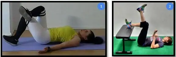 Можно выполнять аналогичное упражнение, используя сразу две скамьи – под плечи и под ступни. Это позволит расширить рабочую амплитуду, еще сильнее задействовав целевые мышцы.