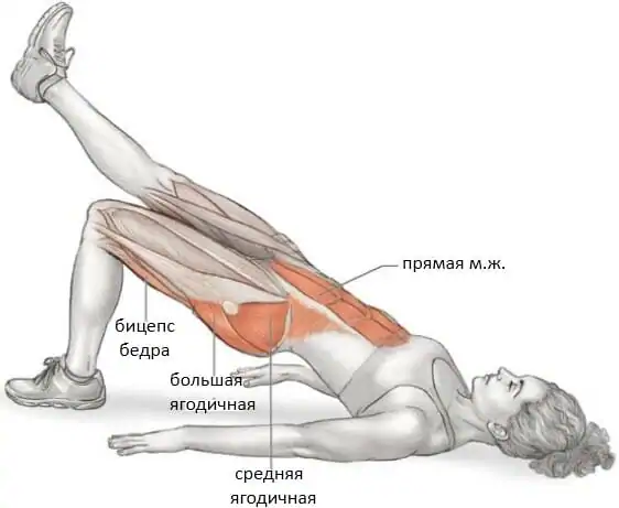 Упражнение относится к классу изолирующих с типом силы push (толкать) и имеет своей целью проработку ягодиц. Мышечный ансамбль включает в себя следующие единицы: