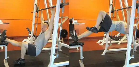 Болгарские выпады в Смите удобны тем, что не нужно особо следить за положением спины и можно полностью сфокусировать внимание на сокращении и растяжении работающих мышечных групп