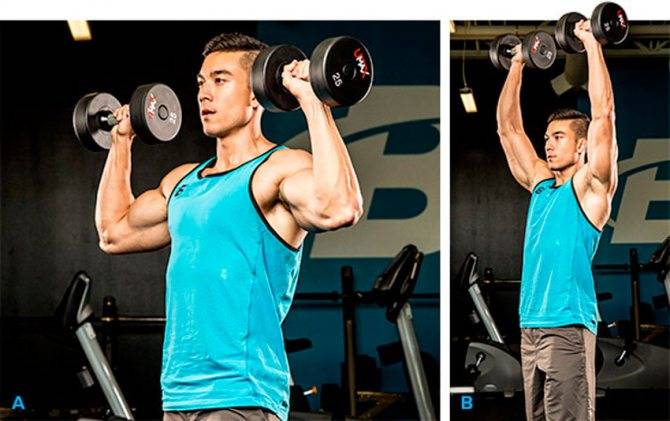 И напоследок еще раз напомним, что жим гантелей стоя больше подойдет для опытных атлетов. Не навредите себе!